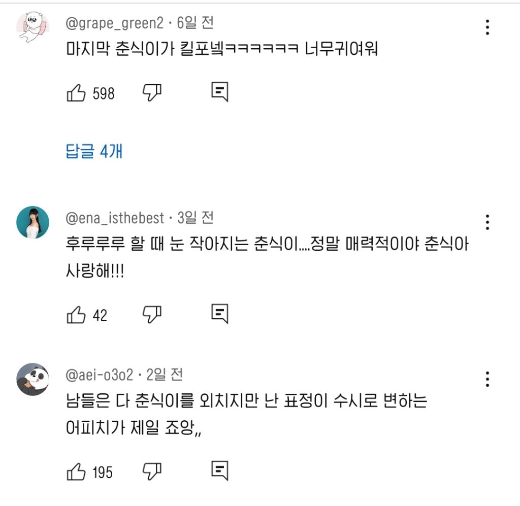 [흥미돋]의견 갈리는 춘식이와 어피치의 마라탕후루 챌린지 작성자물리화학자|작성시간24.06.06|조회수17,252 목록 댓글 44 글자크기 작게가 글자크기 크게가 출처 : 여성시대 물리화학자 다음검색 현재 게시글 추가 기능 열기 북마크 공유하기 신고 센터로 신고 댓글 댓글 44 댓글쓰기 답글쓰기 댓글 리스트 작성자읂어하고참왜하라 | 작성시간 24.06.06 마지막 저 웨이브를 어케 이겨 작성자with u | 작성시간 24.06.06 춘식이 최고 어피치 나가 작성자내피치어피치 | 작성시간 24.06.06 어피치 확신의 센터상.. 끼미쳤다💗 작성자빤꼰살사뽀르빠보르 | 작성시간 24.06.06 아개웃겈ㅋㅋㅋㅋㅋㅋㅋㅋㅋㅋㅋㅋㅋㅋㅋ 작성자낙타자세 | 작성시간 24.06.08 어피치 찢었다 댓글 전체보기