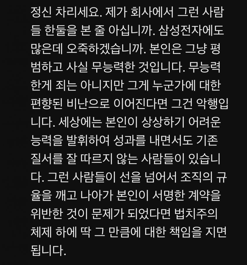 [흥미돋]민희진 배신 어쩌구 저쩌구 하는 사람들에게 돌직구 날리는 김앤장 출신 변호사 작성자믱키|작성시간24.06.06|조회수16,241 목록 댓글 30 글자크기 작게가 글자크기 크게가 출처: https://youtu.be/5guXGaCOg-M?si=qJFc75-ulFxLR2-d영상 변호사님 댓글 일부 다음검색 현재 게시글 추가 기능 열기 북마크 공유하기 신고 센터로 신고 댓글 댓글 30 댓글쓰기 답글쓰기 댓글 리스트 작성자썩은 냄져 빼 | 작성시간 24.06.06 아 욱곀ㅋㅋㅋㅋㅋ 작성자뽀글빠글 | 작성시간 24.06.06 진짜 뼈때린다ㅋㅋㅋㅋㅋ 작성자곽유진 | 작성시간 24.06.06 와 글 너무 멋지다 맞말 작성자비혼이다비혼 | 작성시간 24.06.07 아주 줘 패신다ㅋㅋㅋㅋㅋㅋㅋ 작성자Hell Angel | 작성시간 24.06.09 ㅋㅋㅋㅋ 개패시넼ㅋㅋ 댓글 전체보기
