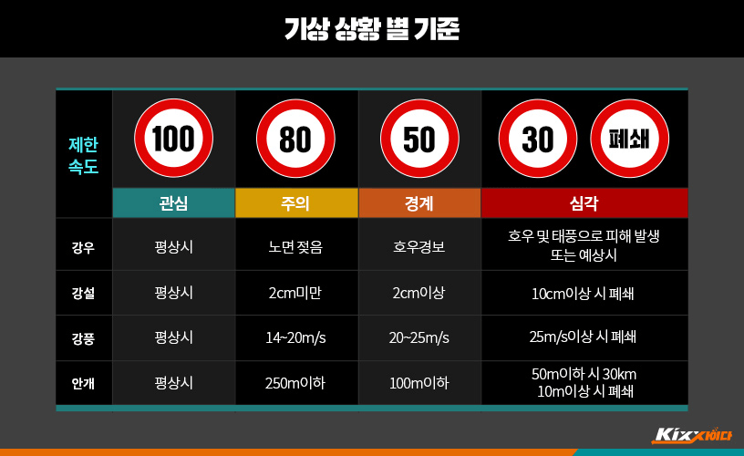 강풍, 폭우와 같은 기상상황에 맞춰