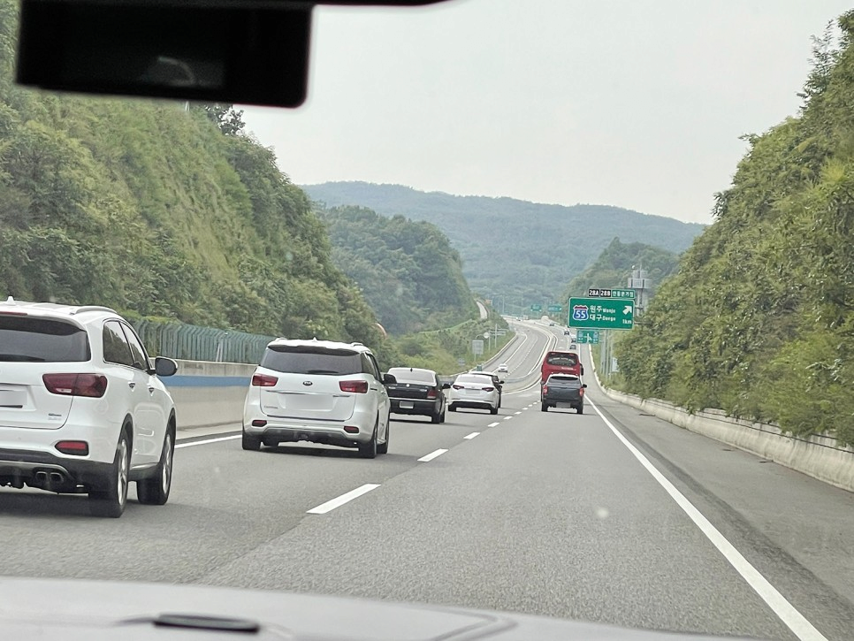 지를 차 3대가 2차선으로 옮겨가지고 추월해도 끝까지 1차로로 달리드라