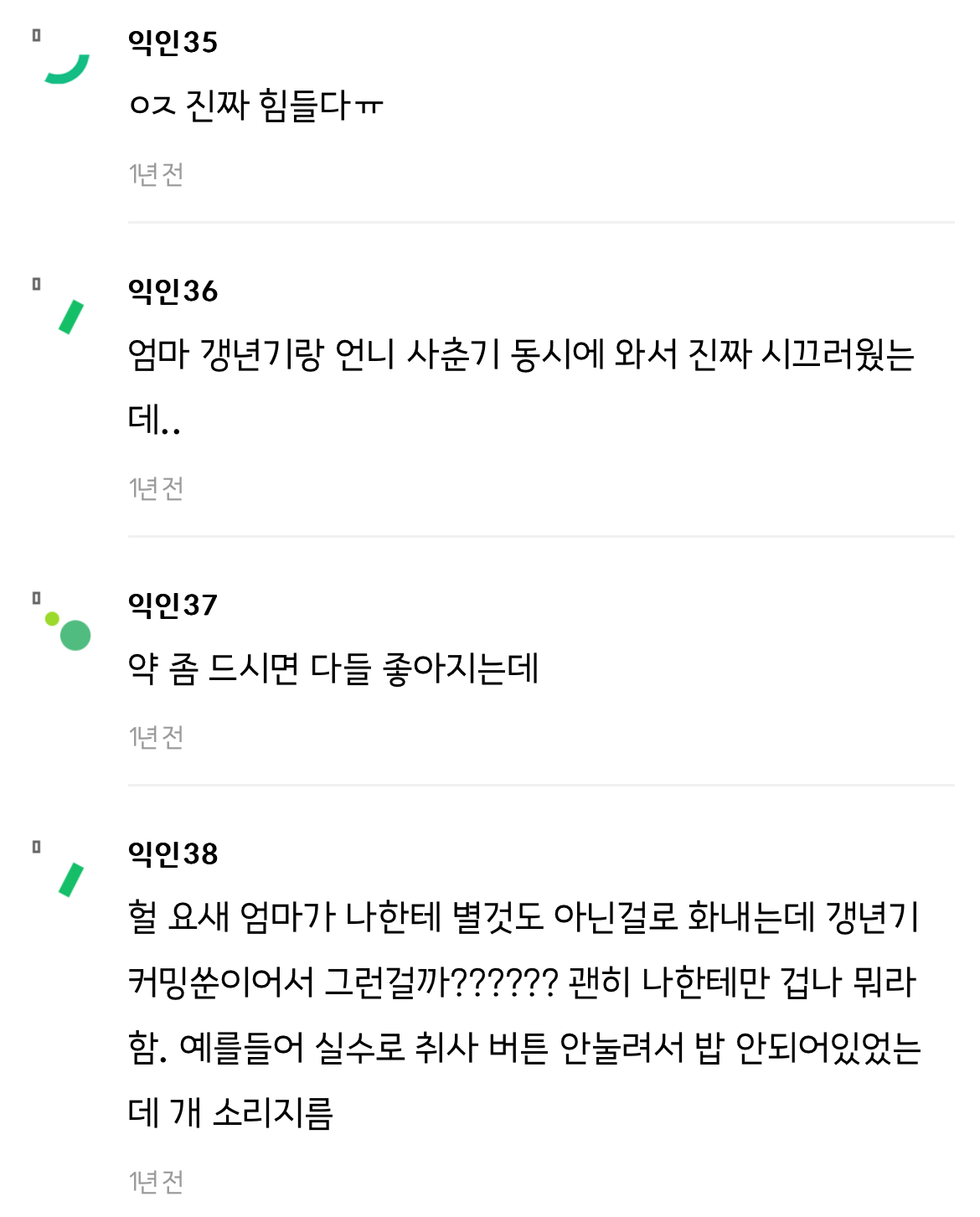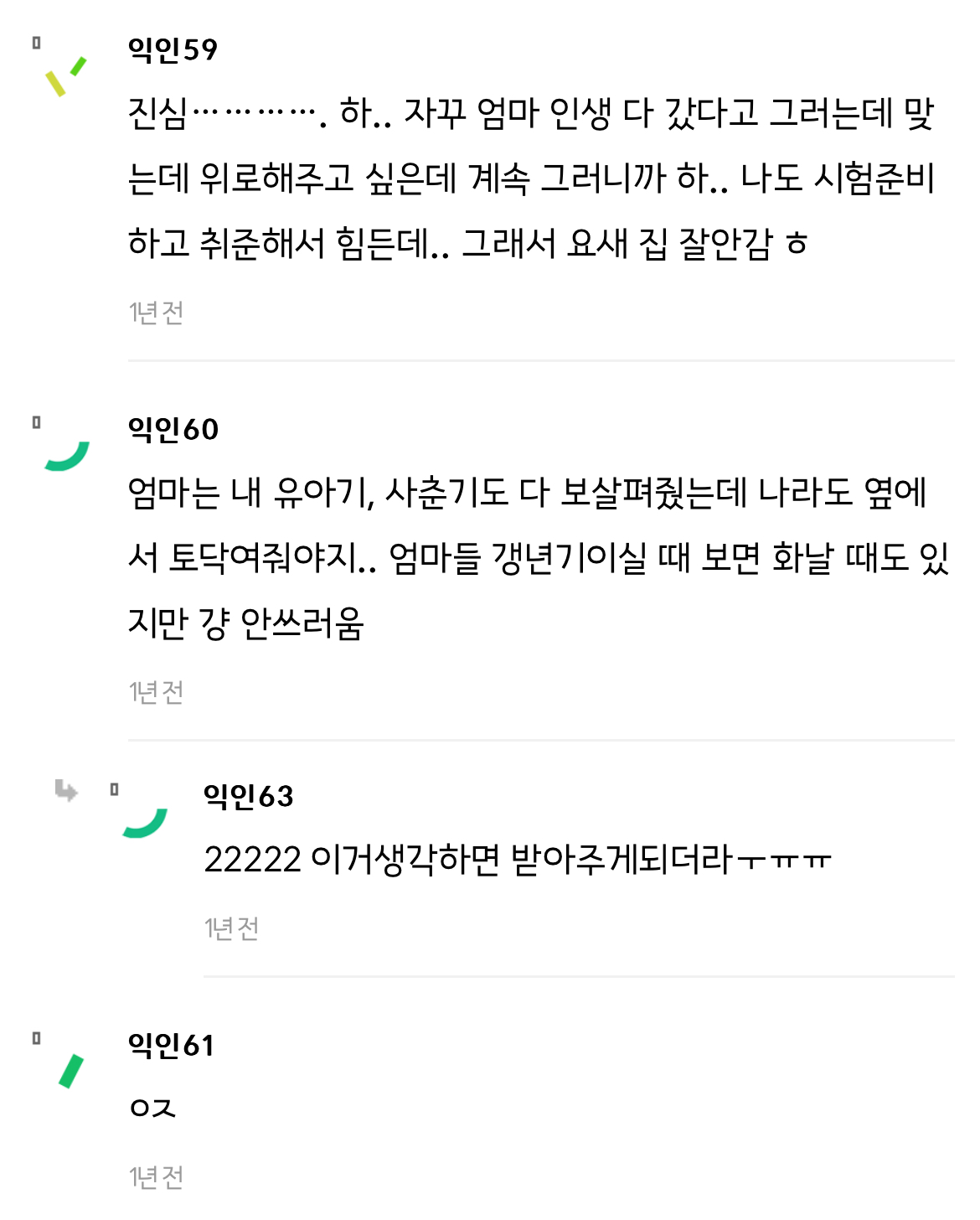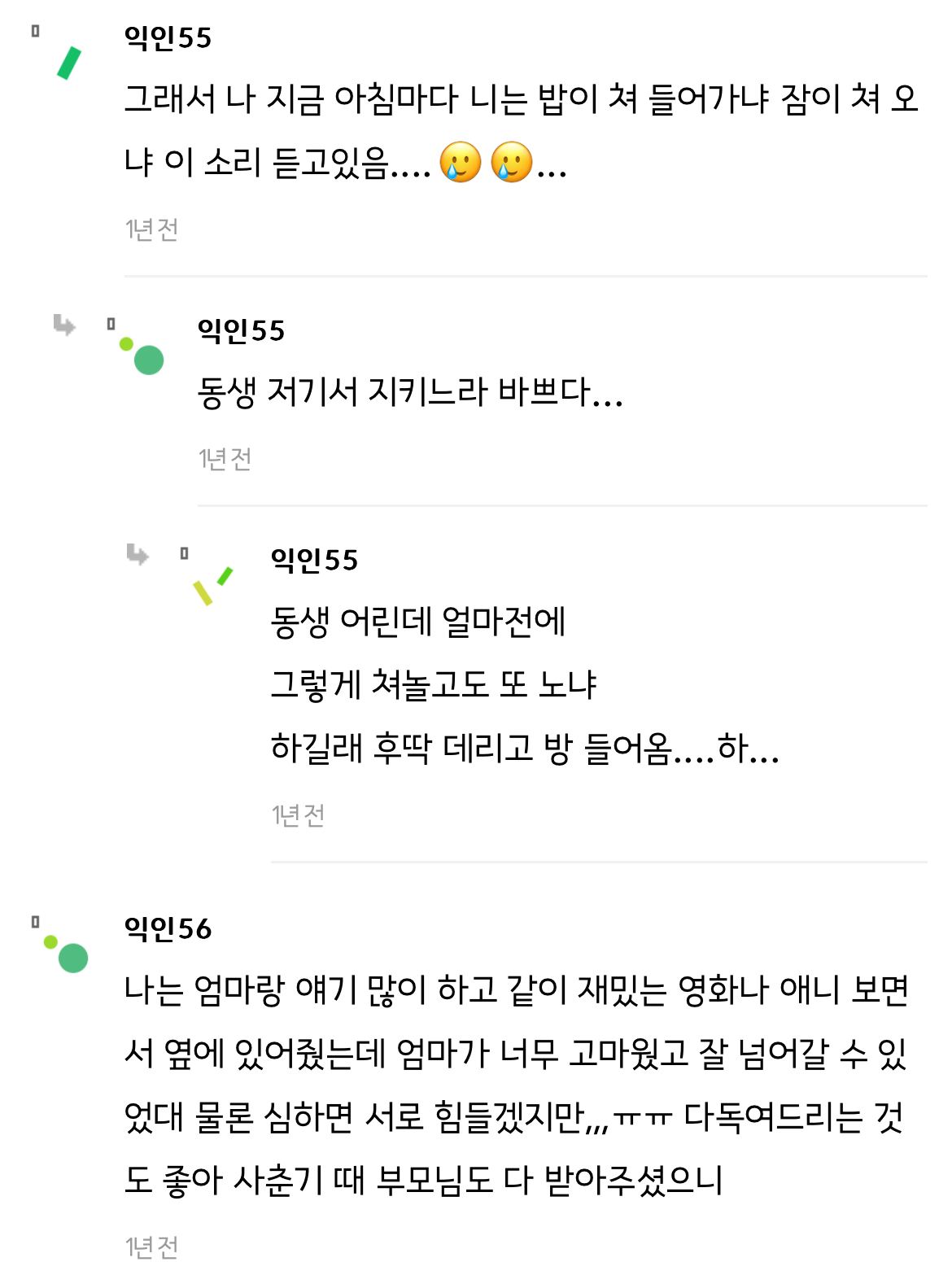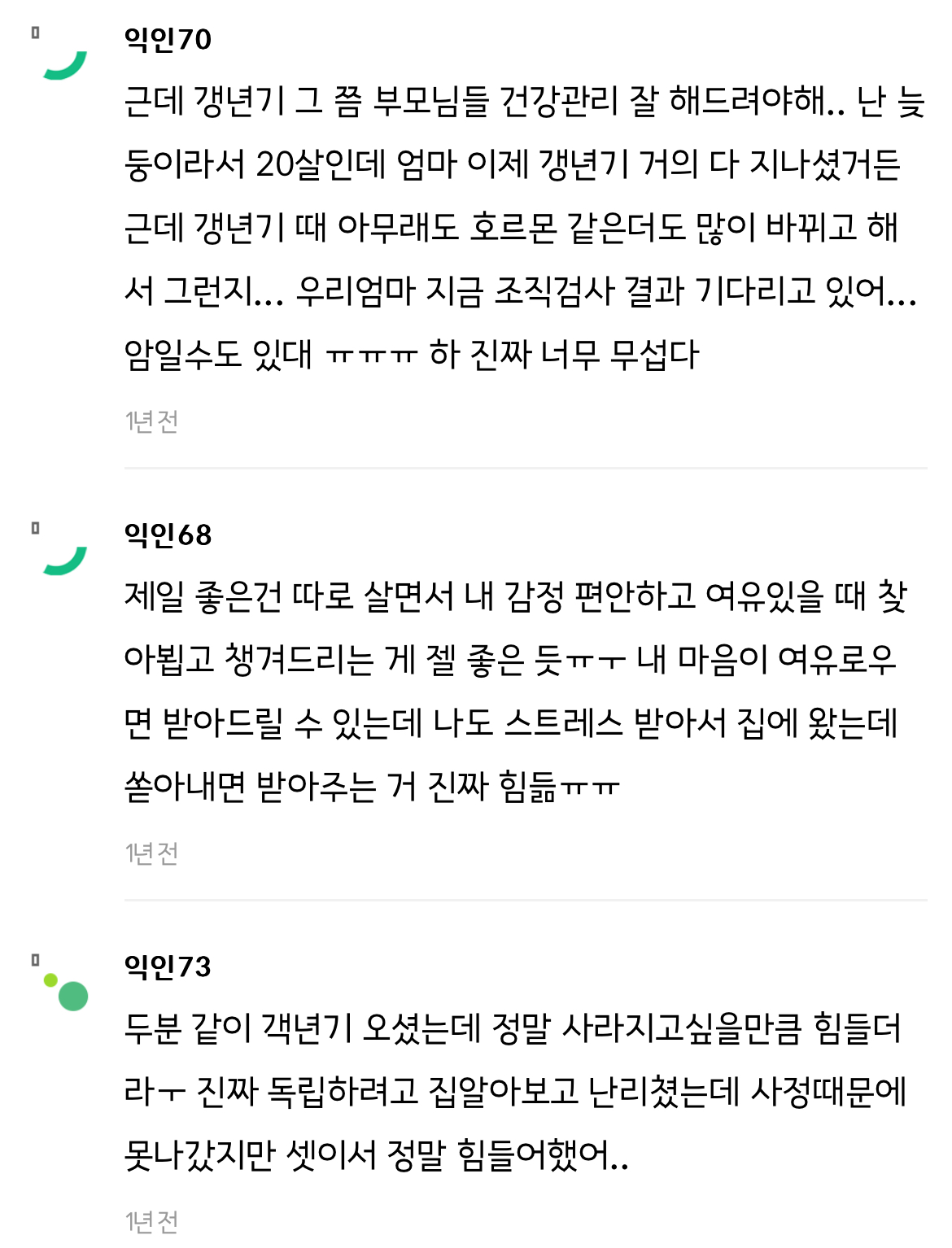 작성자프렌치토스트 작성시간 24.06.06 울개비 진짜 징했음.. 거의 나 고1부터 28살까지? 와... 나 취준이랑 겹쳐서.... 진짜 매일매일이 지옥에 파국이였어. 딱 개비 끝날 때 쯤 엄마 갱년기가 우울로 오는데.. 너무 안타깝고 화도나고... 지금은 괜찮지만 다신 과거로 돌아가고 싶지않아