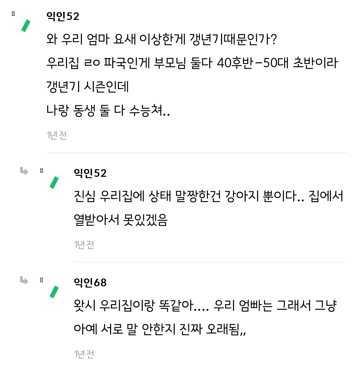 작성자없어져라.너말이야 작성시간 24.06.06 개비 갱년기가 찐이였어... 때마침 조카 태어나서 조금 누그러 졌달까...개비 갱년기때 나랑 개싸우고 3년동안 말 안하고 살았음