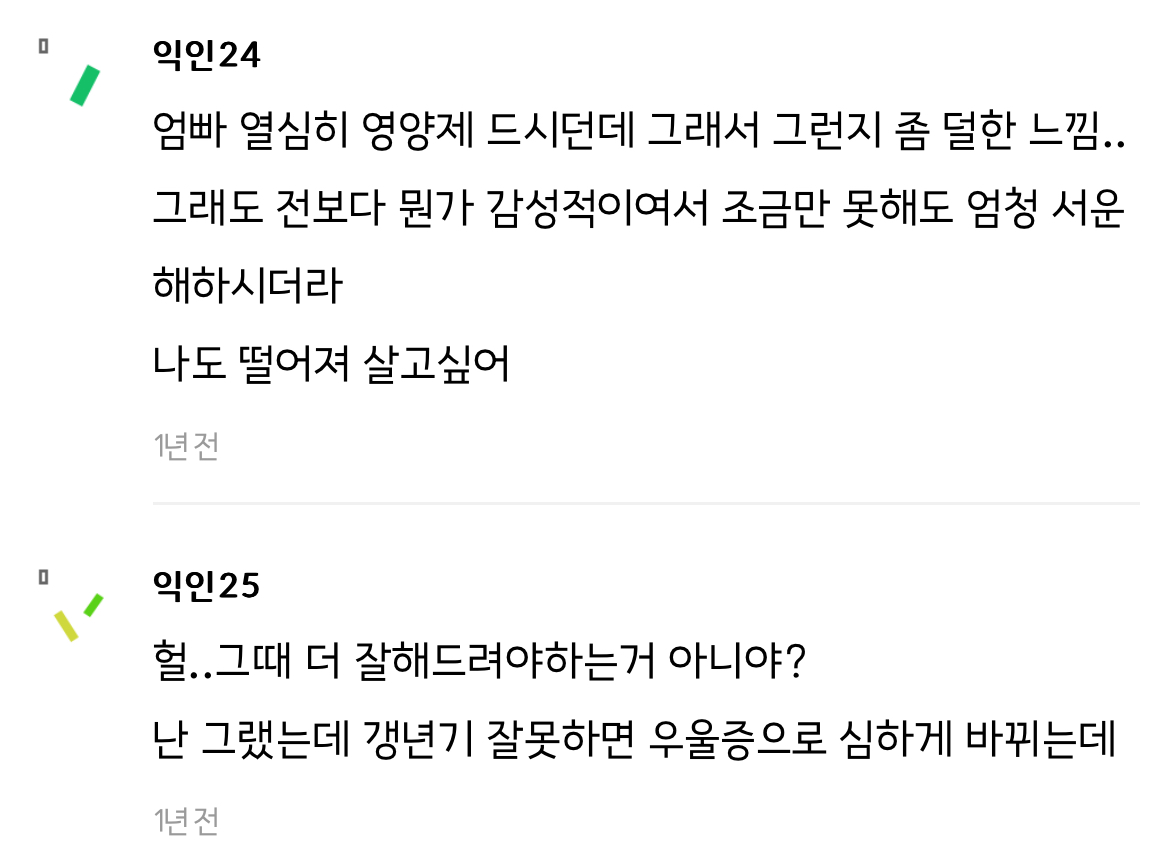 작성자꺄아악 작성시간 24.06.06 헐.. 울 엄마도 나한테 막말 엄청 심하게 하던 시기가 있어서 자주 싸우고 집 나왔었는데.. 갱년기였나 ㅜㅜ.. 지금은 사람이 아예 달라져서 뭐지 싶었는데 갱년기 왔던거구나ㅜ.. 잘 알아볼걸 후회된다