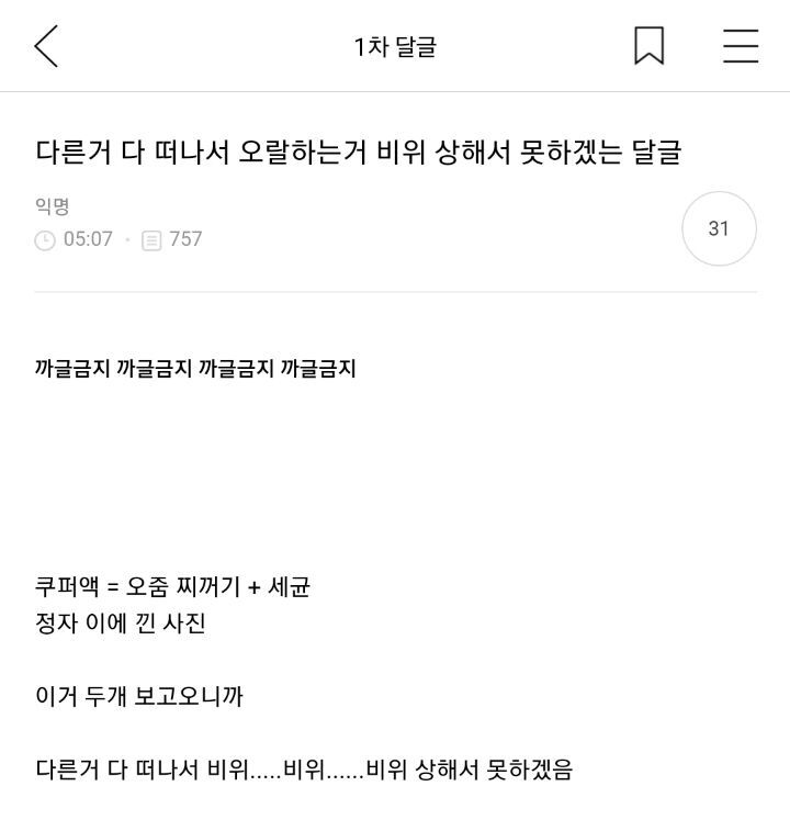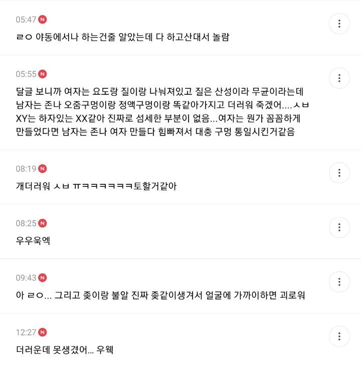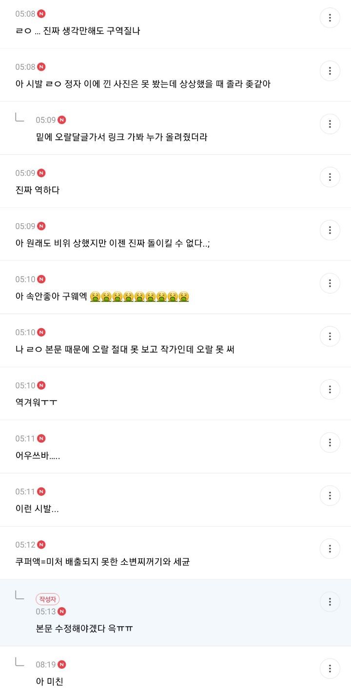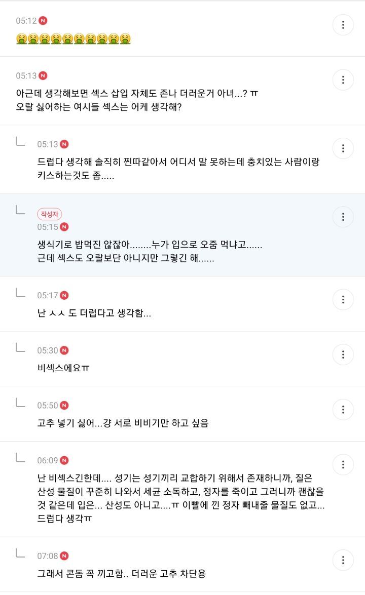 작성자락스가싸악녹여줘 작성시간 24.06.07 아 ㅈㄴ더러워 저러면서 여자 오징어니 치즈니 뭔 소물리에마냥 ㅈㄹ한거임?