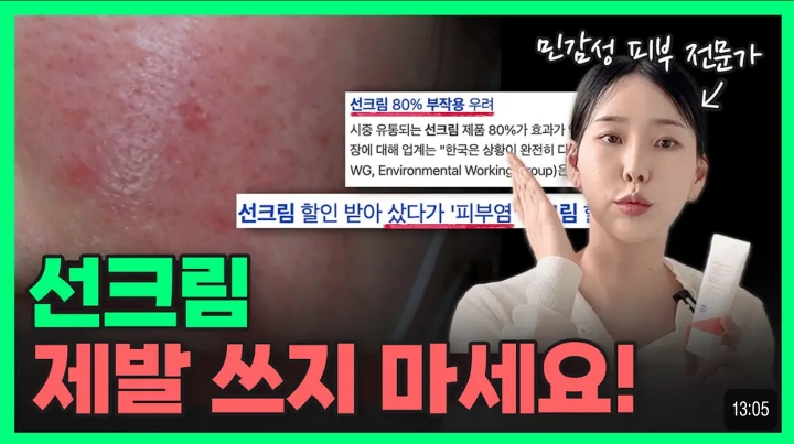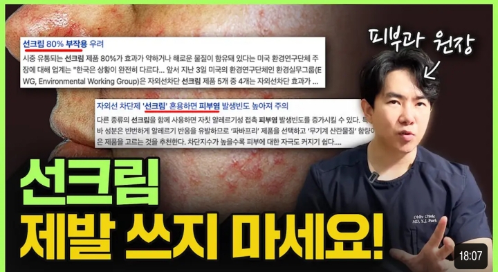 요즘 자주 쓰고 있는 선크림을 괜히 한 번 유튜브에 검색해보았다.