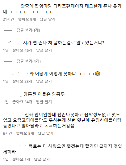 와중에 디스곡 낸 오비고글도 랩못한다고 욕먹는중ㅋㅋ..