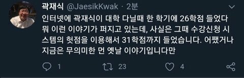 작성자하씨참내 작성시간 24.06.10 저 짤이 곽박사껀 아닌듯 년도나 수업내용이ㅋㅋ 그냥 학점수때문에그런듯?