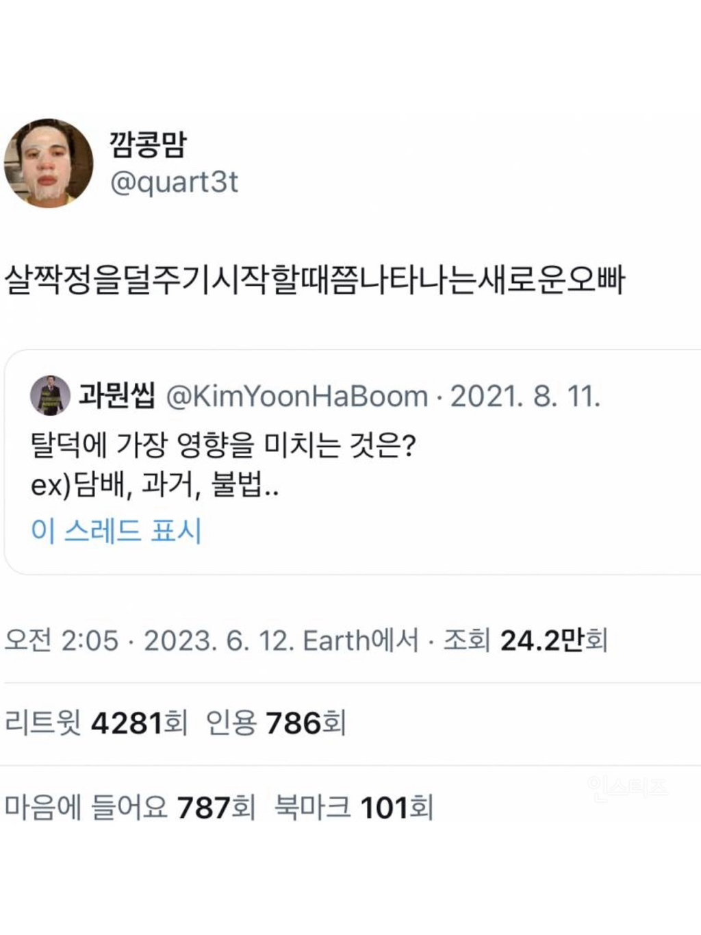 [기타]은근 흔하다는 아이돌 탈덕 사유 작성자손칼국수세트|작성시간24.06.10|조회수17,032 목록 댓글 22 글자크기 작게가 글자크기 크게가 출처: 트위터 깜콩맘맘이 좀 식었을때 새로운 아이돌이 마음에 들어오는 경우 다음검색 현재 게시글 추가 기능 열기 북마크 공유하기 신고 센터로 신고 댓글 댓글 22 댓글쓰기 답글쓰기 댓글 리스트 삭제된 댓글입니다. 답댓글 작성자베이글중독 | 작성시간 24.06.10 ㅇㄱㄹㅇ 작성자PLaVe | 작성시간 24.06.10 늘 이렇게 탈덕함 ㅎ 작성자한태양 | 작성시간 24.06.10 난 걍 외모가볍게 배우2 깊게 아이돌1 좋아했는데 외모가 시드는 순간 버렸어물론 남자한정임ㅋㅋㅋ 여자배우, 돌들은 계속 좋아해 작성자핑크파프리카 | 작성시간 24.06.10 ....어?... 나.. 요새 다른 사람 눈이 들어오더니... 어제 최애 라이브 보다가 걍 끔.. 댓글 전체보기