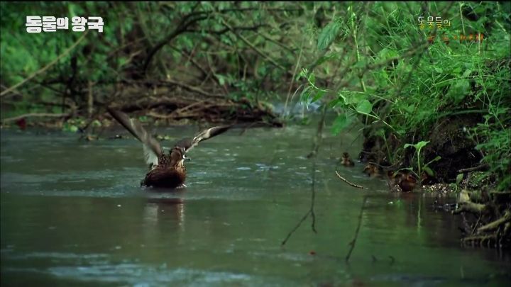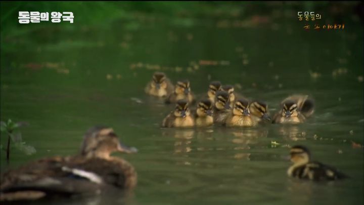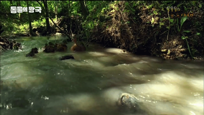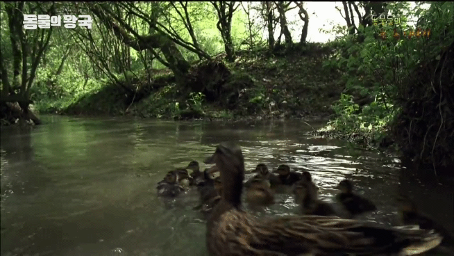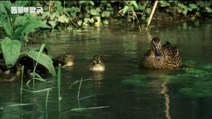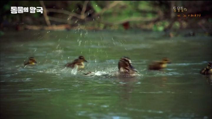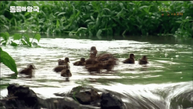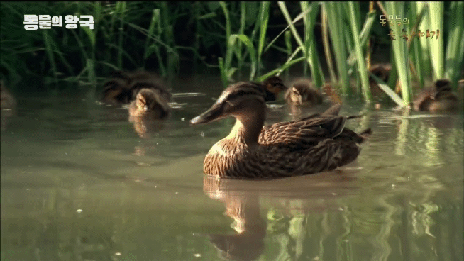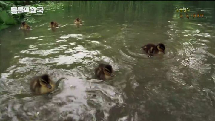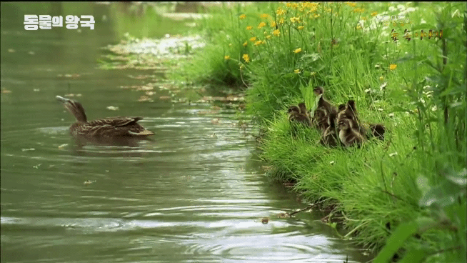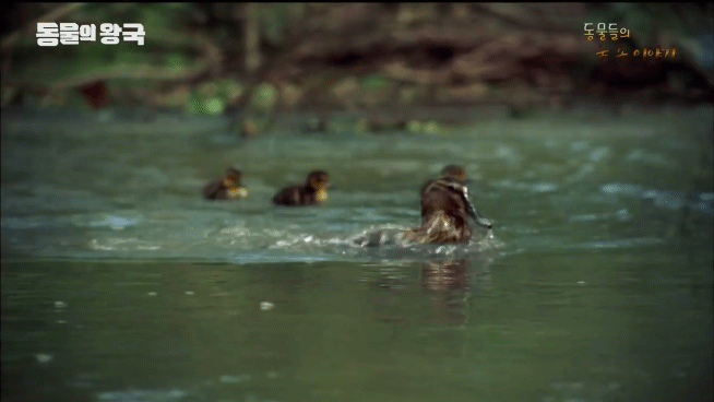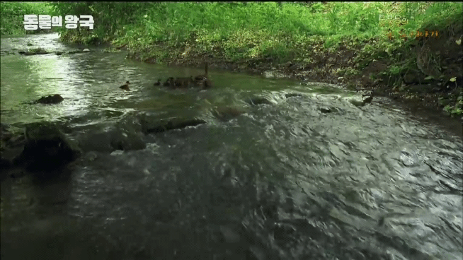 어미는 먼저 물에서 여유롭게 기다리는 중인데