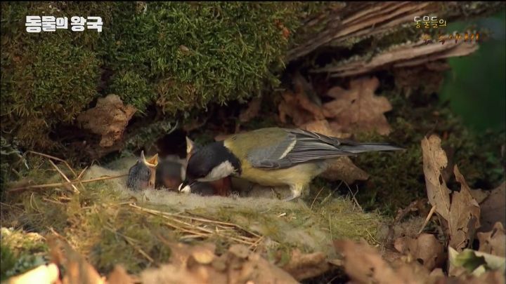 박새 새끼들은 먹이를 물어서 둥지에 안착하면