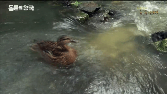 드디어 물살이 멈추고 먹이가 많은곳으로 오게됨