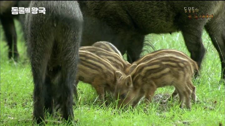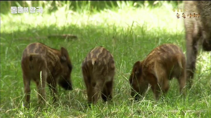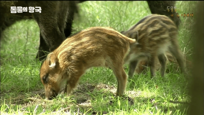 새끼 멧돼지들은 12일 후면 어미 젖을 반즈음