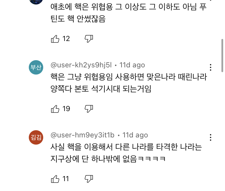 [여시뉴스데스크]북, 전쟁 준비로 보여.. 미국서 나온 한반도 핵 재배치론 작성자(본인닉네임).|작성시간24.06.11|조회수2,772 목록 댓글 15 글자크기 작게가 글자크기 크게가 출처: https://youtu.be/HC6Bfo8rft0?si=b95e_xl4aVyS75_s솔직히 전세계 모든 국가가 비핵화 하면했지누군 가지고있고, 누군 못가지게 하는거 어이없음 다음검색 현재 게시글 추가 기능 열기 북마크 공유하기 신고 센터로 신고 댓글 댓글 15 댓글쓰기 답글쓰기 댓글 리스트 작성자최성훈 | 작성시간 24.06.11 평화롭게좀 살자고 제발.. ㅠㅠㅠ 작성자히바히바휘바 | 작성시간 24.06.11 겟냐 작성자밝게살어 | 작성시간 24.06.11 희망사항 읊고있네 ㅡㅡ 작성자Miguel Ohara | 작성시간 24.06.11 하 진짜 불안하다..ㅈ 작성자척추어깨펴 | 작성시간 24.06.11 북한이 한국하고 선 긋고 , 중국러시아 노선이라고 확실하고 단호한 태도 보이고 있잖아.... 북한이 얼마나 국제정세 잘알인데... 갑자기 한국 단호히 손절이라는 건 댓글 전체보기