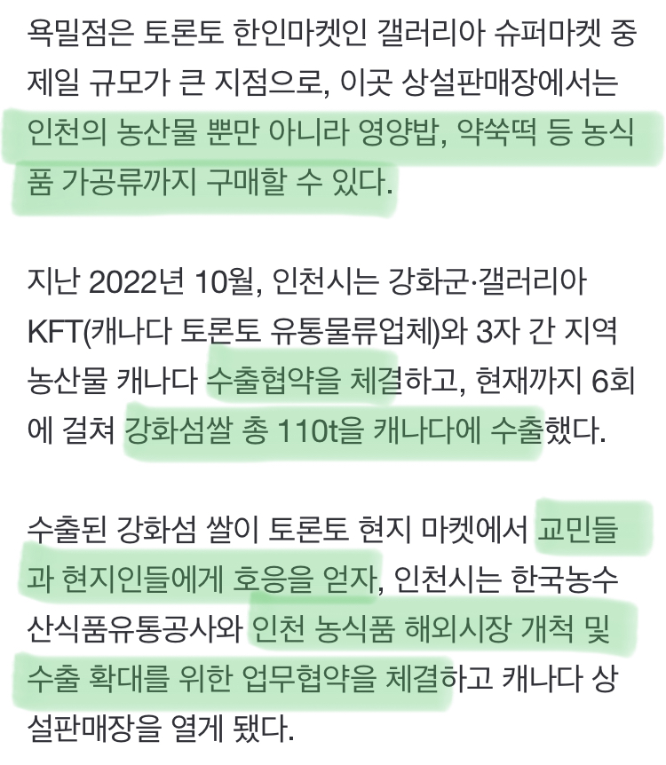[여시뉴스데스크]캐나다 토론토에 인천 농식품 상설판매장 개장 작성자(본인닉네임).|작성시간24.06.11|조회수2,349 목록 댓글 3 글자크기 작게가 글자크기 크게가 출처: https://n.news.naver.com/article/003/0012594288?sid=102 다음검색 현재 게시글 추가 기능 열기 북마크 공유하기 신고 센터로 신고 댓글 댓글 3 댓글쓰기 답글쓰기 댓글 리스트 작성자하트하트팝팝 | 작성시간 24.06.11 케이푸드 화이팅! 안그래도 얼마전에 외국에서 짭한식 파는거때문에 열받았는데 잘됐다♡ 작성자페다이킨 | 작성시간 24.06.11 와 너무 좋다 우리 농산물 더 잘됐으면 ㅣㅠㅜㅜ 작성자watuwnt | 작성시간 24.06.11 와 좋다 댓글 전체보기