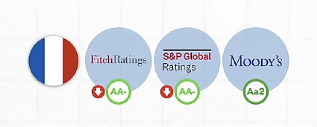 결국 이는 투자자들과 신용평가사에게 리스크로 다가오고, 프랑스의 신용등급은 영국이나 한국 수준에서 체코나 슬로베니아 수준으로 떡락.