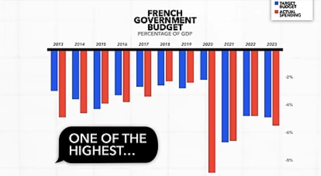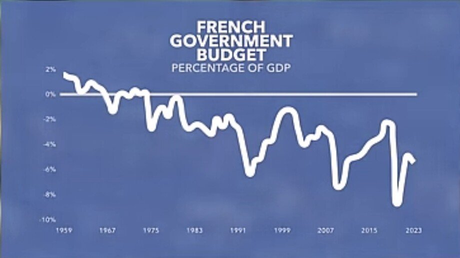 사실 프랑스의 재정적자는 유명해서 1973년 이래 프랑스는 50년넘게 단 1번도 재정 적자에서 벗어나지 못했음.