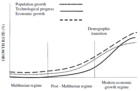 실제로 산업혁명 이후에도 거의 100년간은 기술증가를 통한 인구증가로 경제팽창하는게 경제성장의 60% 이상이었을 정도.