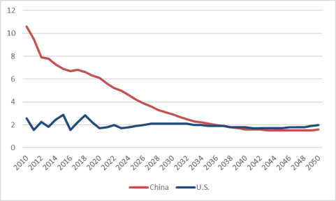 [ 미국보다 낮아지는 중국 잠재 성장률 ]