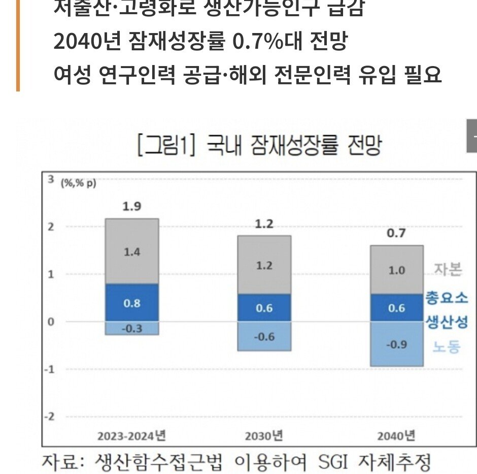 [ 노동투입량 감소에 의해 0% 대 성장률로 하락하는 한국 성장률 ]
