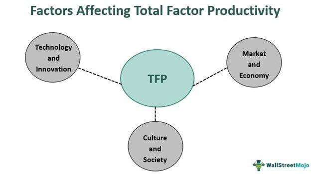 하지만, 공식에서 보듯이 총요소생산성은 노동투입량과 자본투입량의 합산에 곱하는 즉 시너지를 배가시켜주는 역할이지 근본적인 경제 성장의 토대는 못 됨.