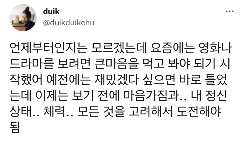 작성자엔요와요플레 작성시간 24.06.14 쇼츠 영향인 거 같아… 짧은 걸 계속 보니 1시간 짜리가 버거운…