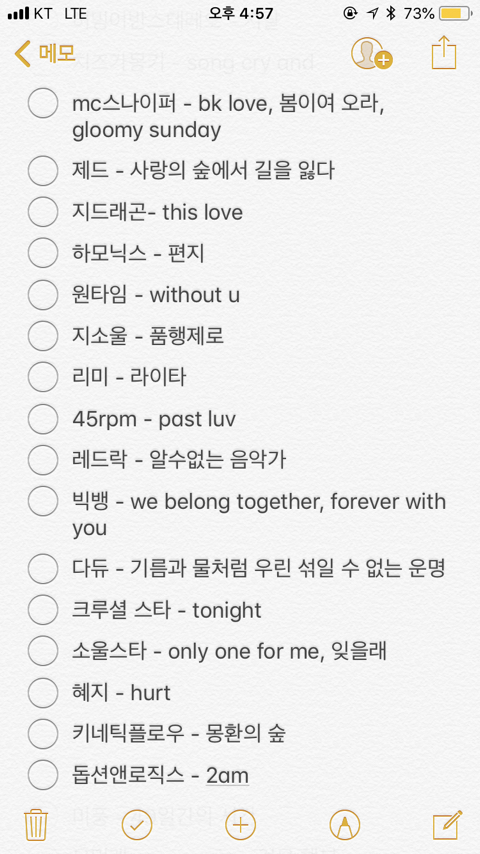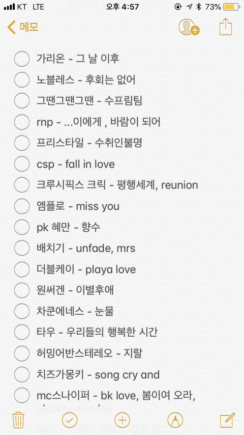 이루펀트 자장가, 다듀 불면증, 솔컴, 원타임 아직도 듣는데 강같은 글발견,, 플리만들러감니다 완전 잊고있던 곡 생각나고 너무 좋다 -