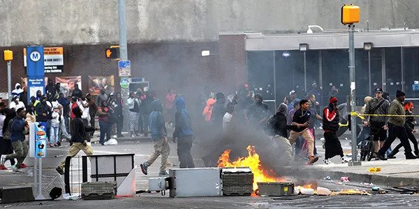 2015년, 경찰에 구금된 상태에서 일주일 만에 척추 손상으로 사망한 흑인 청년 프레디 그레이의 장례식이 열린 27일, 경찰의 과잉대응을 규탄하는 시위가 폭동으로 번지면서 볼티모어 시는 아수라장으로 변했다.