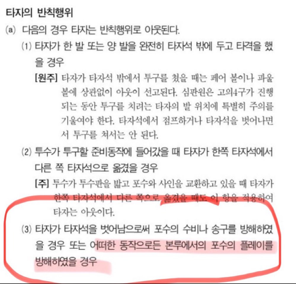 타자 반칙이 적용되는 경우 (3)번을 보면