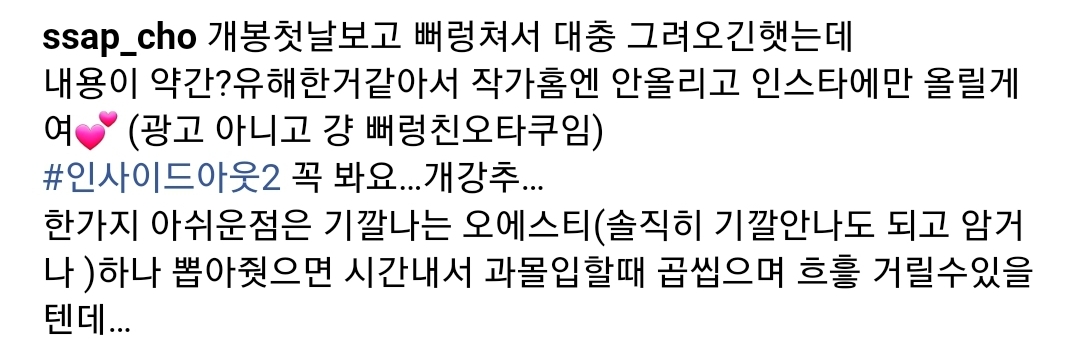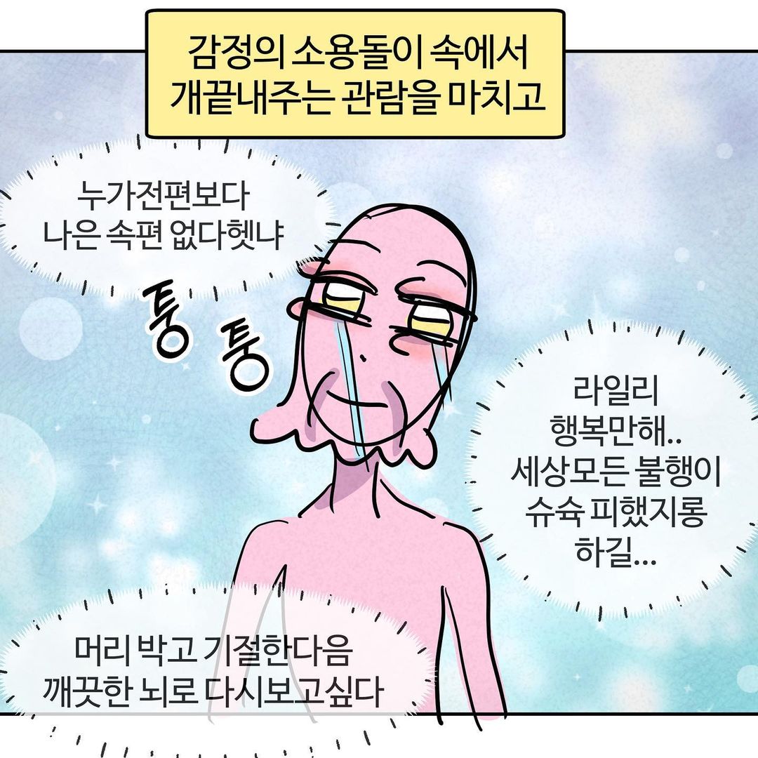 작성자수수수 수퍼모자 작성시간 24.06.19 와 컷 하나하나 다 공감가ㅋㅋㅋㅋㅋㅋ방금 영화 보고서 연어 중인데 마지막 문장도 공감 간다 과몰입 할 수 있게 끝내주는 오슷을 내놓으란 말이야!!!!