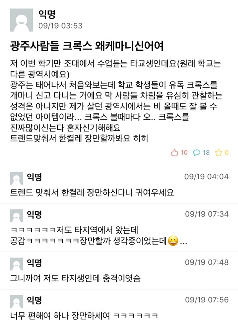 [스크랩] [흥미돋]광주광역시 사람들 크록스 왜케 마니 신어여 작성자(본인 닉네임),|작성시간24.06.19|조회수6,120 목록 댓글 22 글자크기 작게가 글자크기 크게가 출처 : 여성시대 하울의 움직이는 성 기/ 조선대학교 에브리타임제주, 인천, 부산 친구들광주에서 대학다니더니 크록스 장만해서 졸업함이유는...모름... 그냥 신는거임... 다음검색 스크랩 원문 : *여성시대* 차분한 20대들의 알흠다운 공간 현재 게시글 추가 기능 열기 북마크 공유하기 신고 센터로 신고 댓글 댓글 22 댓글쓰기 답글쓰기 댓글 리스트 작성자스타후르츠와인 | 작성시간 24.06.19 나 코로나 전에 광주 놀러가서 생애 첫 크록스 사옴... 작성자러브 공작단 | 작성시간 24.06.19 지금이순간도 신고맀음 작성자정회열주니어 | 작성시간 24.06.19 최소 두세 개씩은 갖고 있음ㅋㅋㅋ 작성자윌크 화이트 | 작성시간 24.06.19 이 글보고 광주 놀러간다고 크록스 챙겨신었는데 나만 신고 있음🥲 다들 운동화를 신으셨더라고...... 작성자포르타 | 작성시간 24.06.19 광주크록시 댓글 전체보기