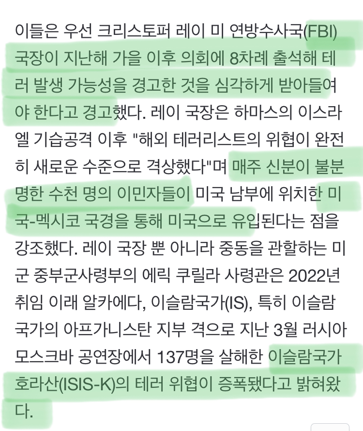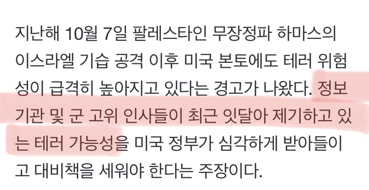 [여시뉴스데스크]“빨간 경고등 켜졌다”…美 본토 테러 가능성 제기 작성자(본인닉네임).|작성시간24.06.20|조회수1,111 목록 댓글 2 글자크기 작게가 글자크기 크게가 출처: https://n.news.naver.com/article/021/0002643707?sid=104 다음검색 현재 게시글 추가 기능 열기 북마크 공유하기 신고 센터로 신고 댓글 댓글 2 댓글쓰기 답글쓰기 댓글 리스트 작성자짱밍이 | 작성시간 24.06.20 와이라노 전세계적으로.. 작성자지미니루루 | 작성시간 24.06.20 주식빼야겟네 댓글 전체보기