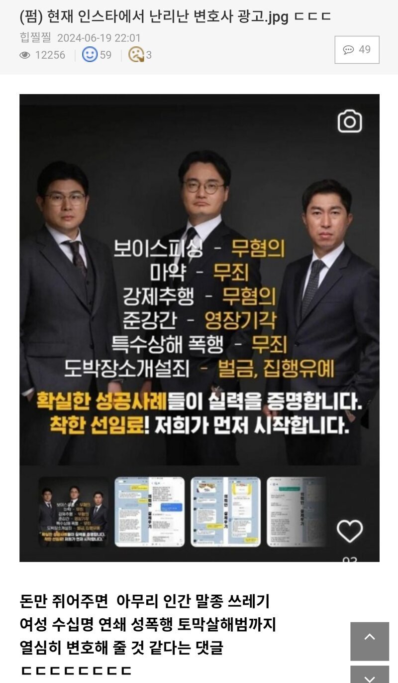 작성자해쉬스완 작성시간 24.06.29 난 피해자로 고소대리인(변호사) 써 본 입장인데.. 저런 광고 보니까 억장이 무너진다