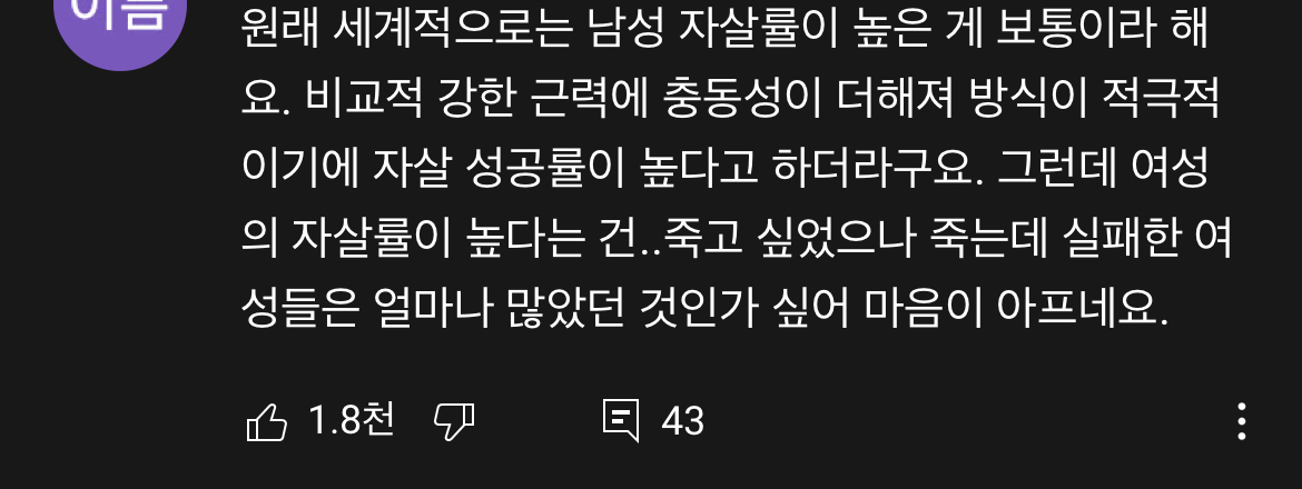 우리나라에서, 그 특정세대만 여성자살율이 더 높음