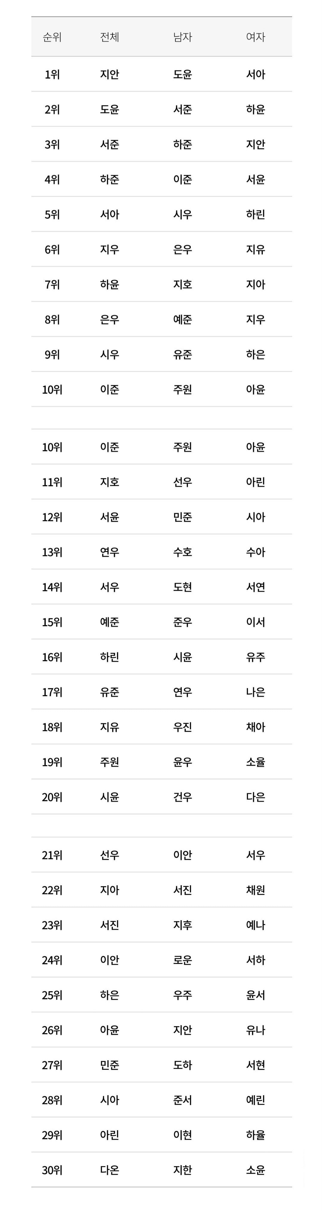 [기타]요즘 유행하는 어린이 이름 TOP 30 작성자폰서트|작성시간24.06.23|조회수35,909 목록 댓글 41 글자크기 작게가 글자크기 크게가 출처: 여성시대 (폰서트)https://www.dmitory.com/issue/324760851이슈/유머 - 요즘 유행하는 어린이 이름 TOP 30익명 정보 커뮤니티 사이트www.dmitory.com 다음검색 현재 게시글 추가 기능 열기 북마크 공유하기 신고 센터로 신고 댓글 댓글 41 댓글쓰기 답글쓰기 댓글 리스트 작성자Break of Dawn | 작성시간 24.06.23 이뻐 ㅋㅋㅋ 부드럽네 다들 작성자일론 머스크 | 작성시간 24.06.23 인소 이름 모음집같닼ㅋㅋㅋ 작성자너도나도니도 | 작성시간 24.06.23 지안이 예쁘다 작성자방콕 | 작성시간 24.06.23 어른들도 개명하면 저 이름이더라ㅋㅋㅋㅋ그래서 개명시기 알 수 있음 작성자힘차게등장하는연어 | 작성시간 24.06.23 요새 성인도 저 이름들로 개명 많이 하더라 내 친구 하윤으로 개명함 댓글 전체보기
