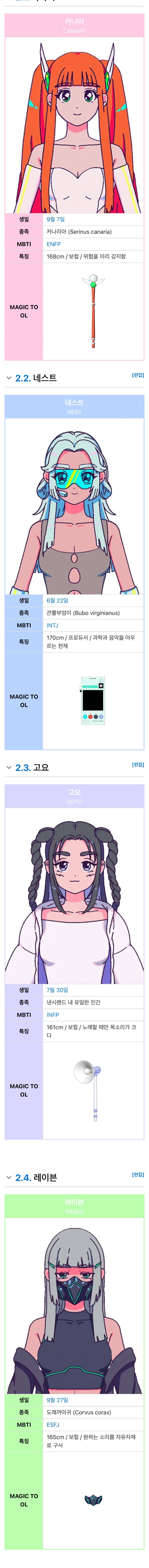 카나리∙네스트∙고요∙레이븐 4명의 멤버…