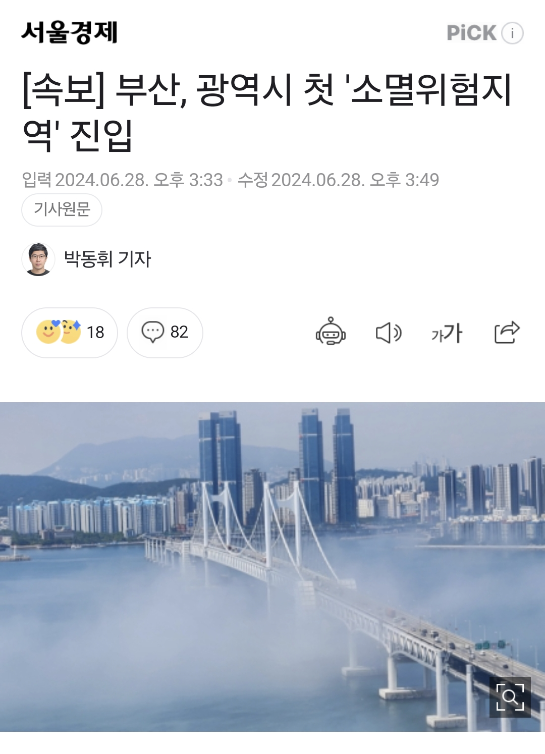 부산광역시가 저출생과 초고령화 여파로 광역시 가운데 처음으로 '소멸위험단계'에 진입했다.