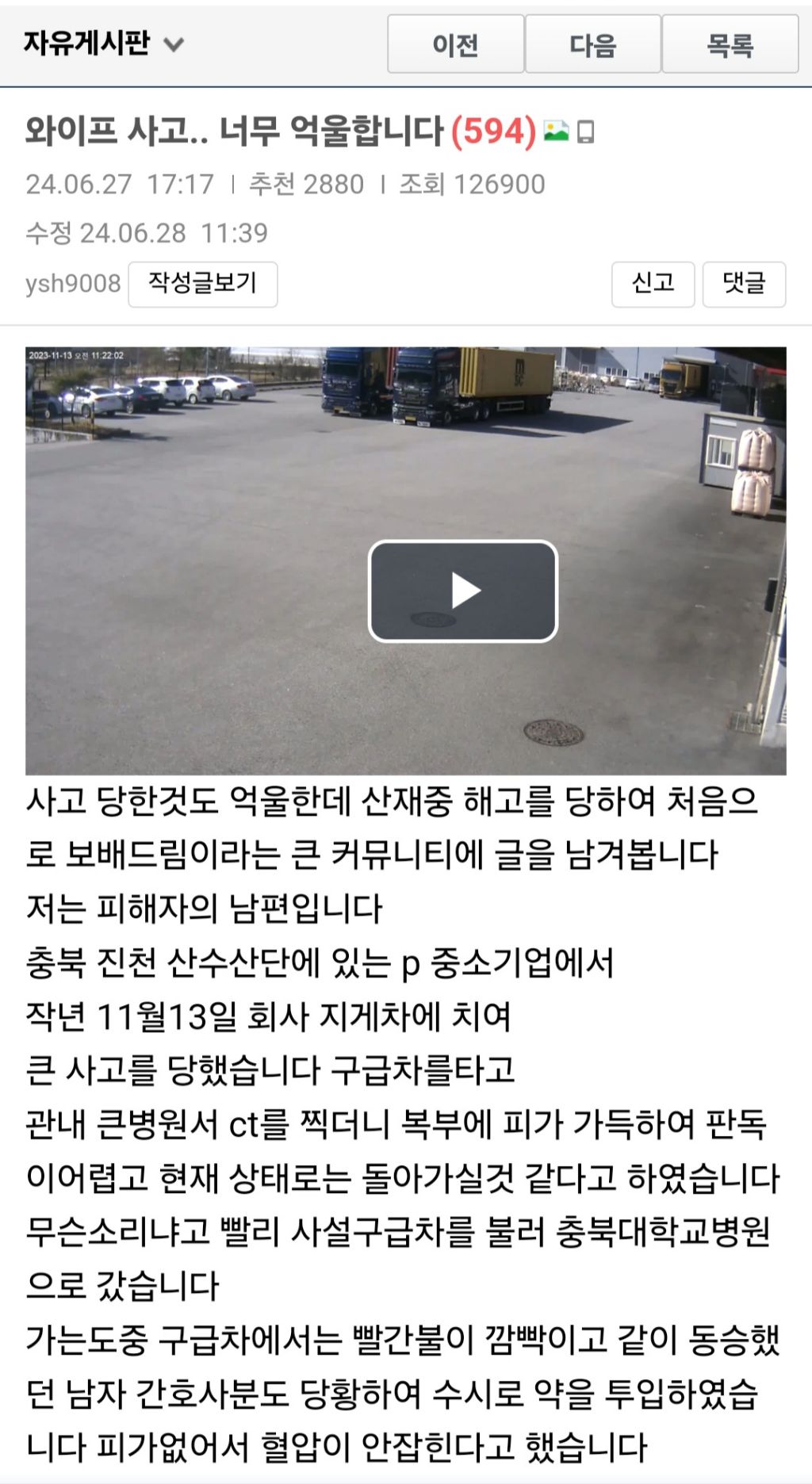 원문 들어가면 사고 당시 CCTV랑 수술 후 사진있어..