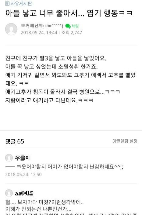 [스크랩] [흥미돋]아들 낳고 너무 좋아서 한 엽기 행동 작성자얼큰칼국수2|작성시간24.06.29|조회수39,376 목록 댓글 265 글자크기 작게가 글자크기 크게가 출처 : 여성시대 power up! 다음검색 스크랩 원문 : *여성시대* 차분한 20대들의 알흠다운 공간 현재 게시글 추가 기능 열기 북마크 공유하기 신고 센터로 신고 댓글 댓글 265 댓글쓰기 답글쓰기 댓글 리스트 작성자러키여시잖앙 | 작성시간 24.06.30 …? 작성자메롱씨티 | 작성시간 24.06.30 어우십 작성자오늘의점심은 | 작성시간 24.06.30 저거 성폭행이지... 작성자2024년 로또 1등 최고 금액 당첨자 | 작성시간 24.07.01 ...???? 작성자잉지은 | 작성시간 24.07.01 헐 ... 댓글 전체보기