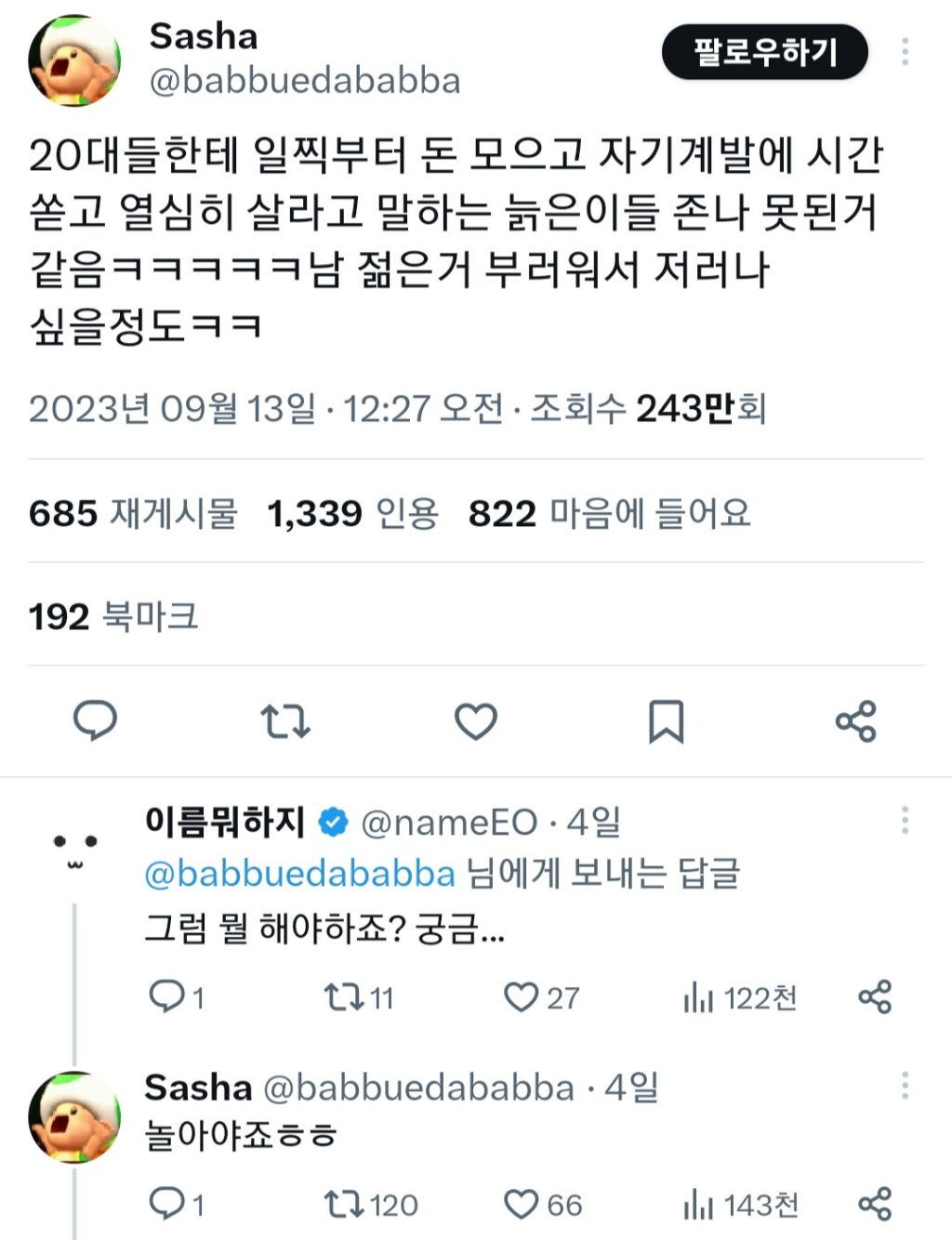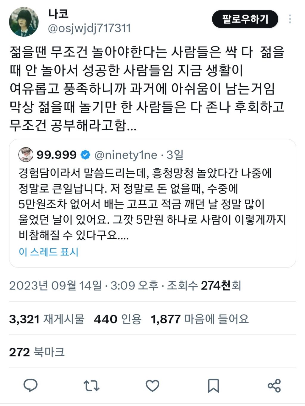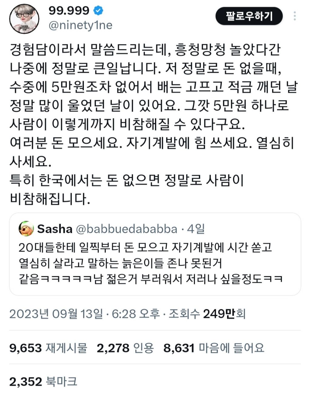 별개로 돈모으고 열심히살라는게 못된얘기는 아닌거같음
