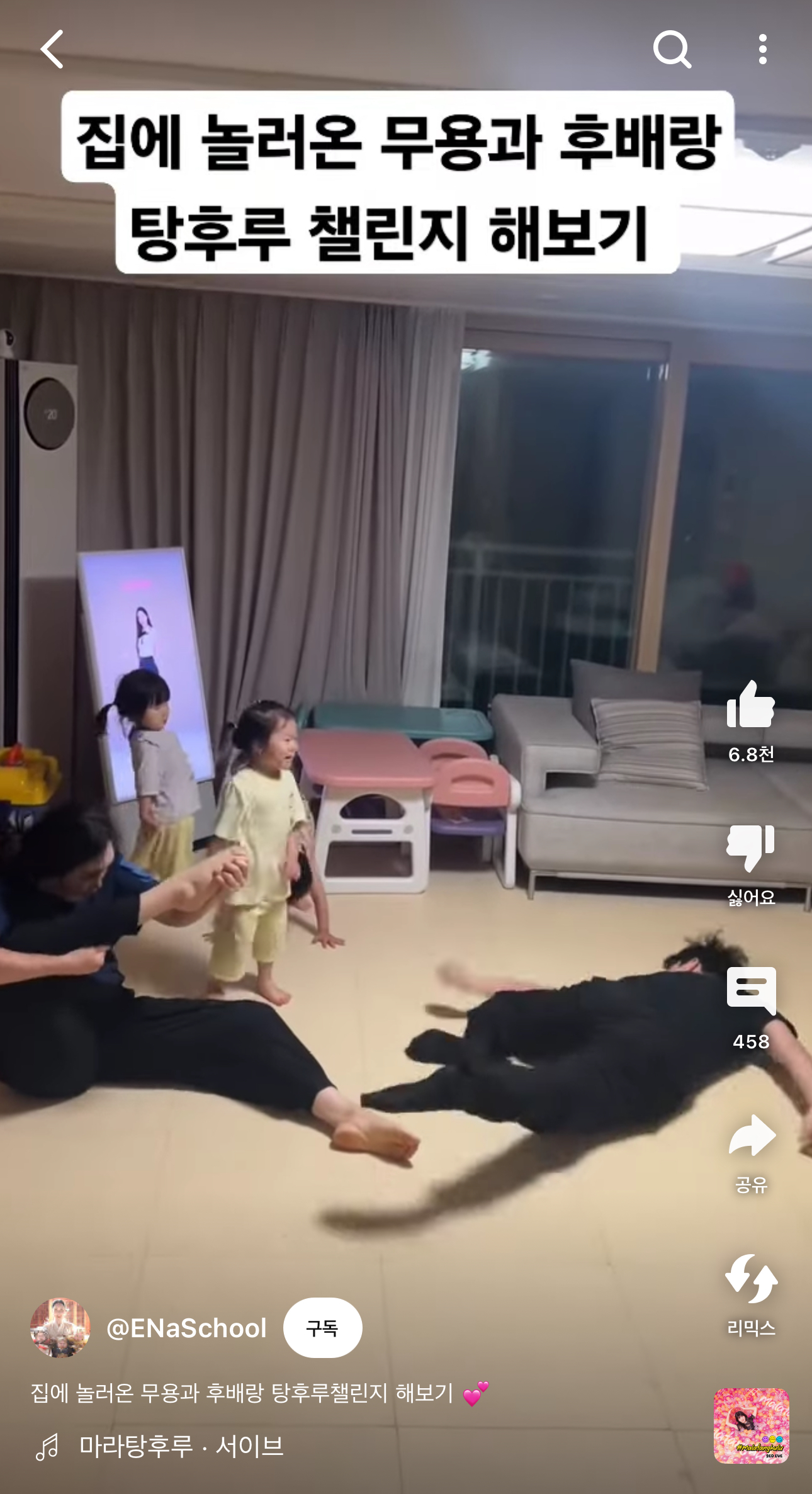 작성자행동파 돼지 작성시간 24.06.30 개잘췈ㅋㅋㅋㅋㅋㅋㅋ 남편 웃음소리도 개웃김 ㅜㅜㅜㅜ 같이 웃게돼