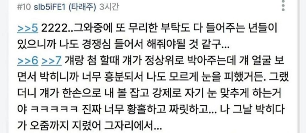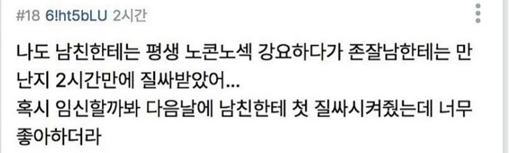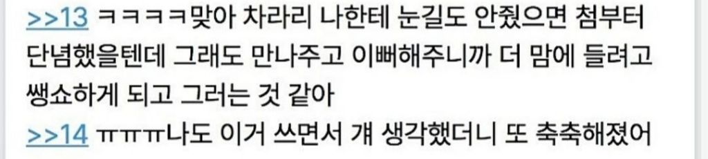 작성자동구라미라미 작성시간 24.07.02 별님이 아님 트젠 같은데 ㅋㅋㅋㅋㅋ아무리 남미새여도 여자들 추구미가 달라서 다른 여자랑 하는걸 좋다고 하진않을걸??? 글고 오줌쌌다는것도 그렇고 첩 이러는 거보니...여자는 아닌거같음