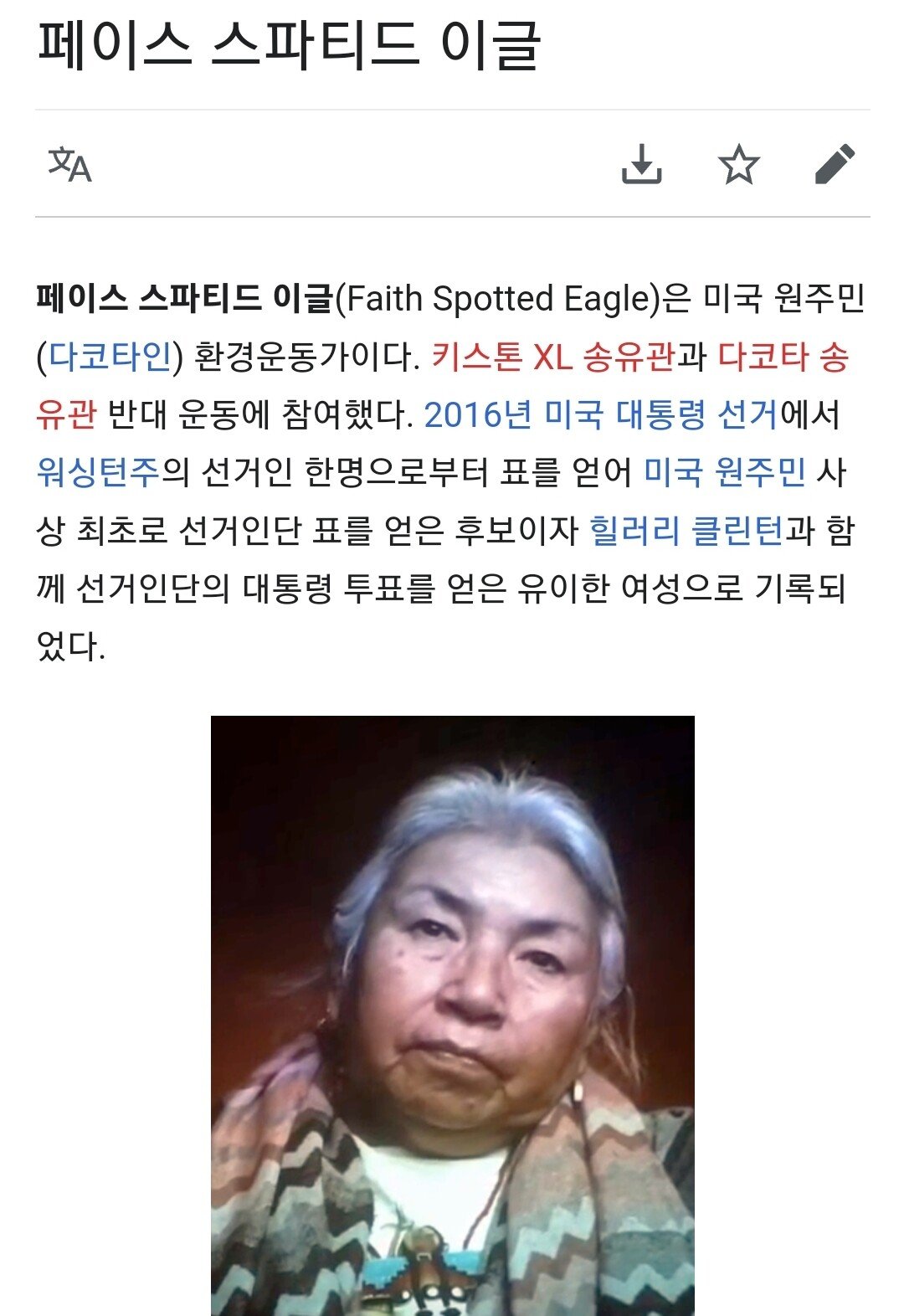 16년 대선에서 배신표로 인디언 최초로 선거인단 표를 받아 역사를 쓰기도 했다