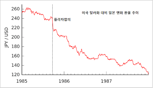일본의 버블 형성이 플라자 합의로 인한 인위적인 엔화 절상 때문이라고 생각하는 경우가 많더라고