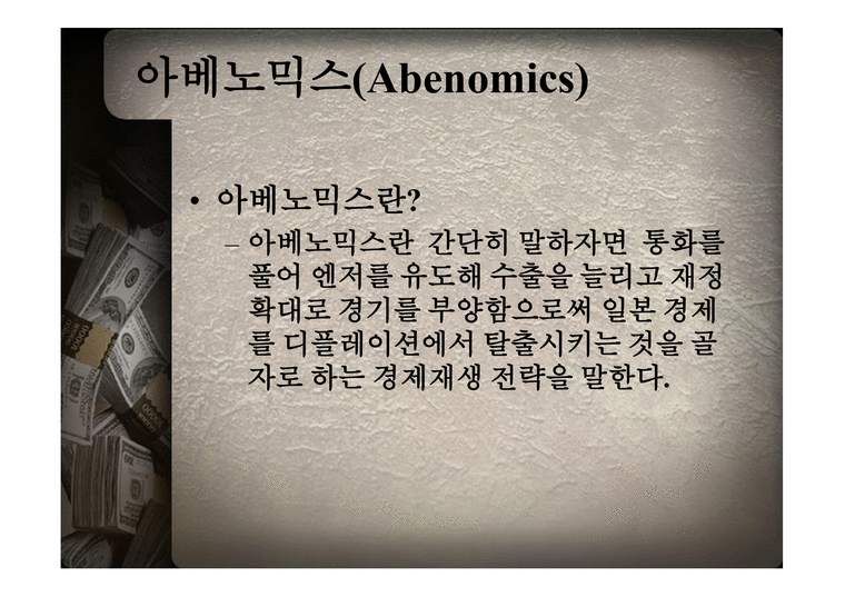 아베노믹스 시행 이전과 눈에 띄는 차이가 없는 상황이야