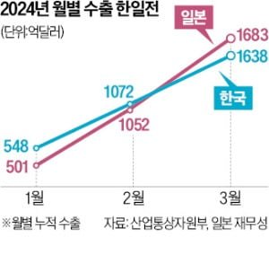 15년 전만 하더라도 일본의 수출액이 한국보다 두 배 가량 많았음에도