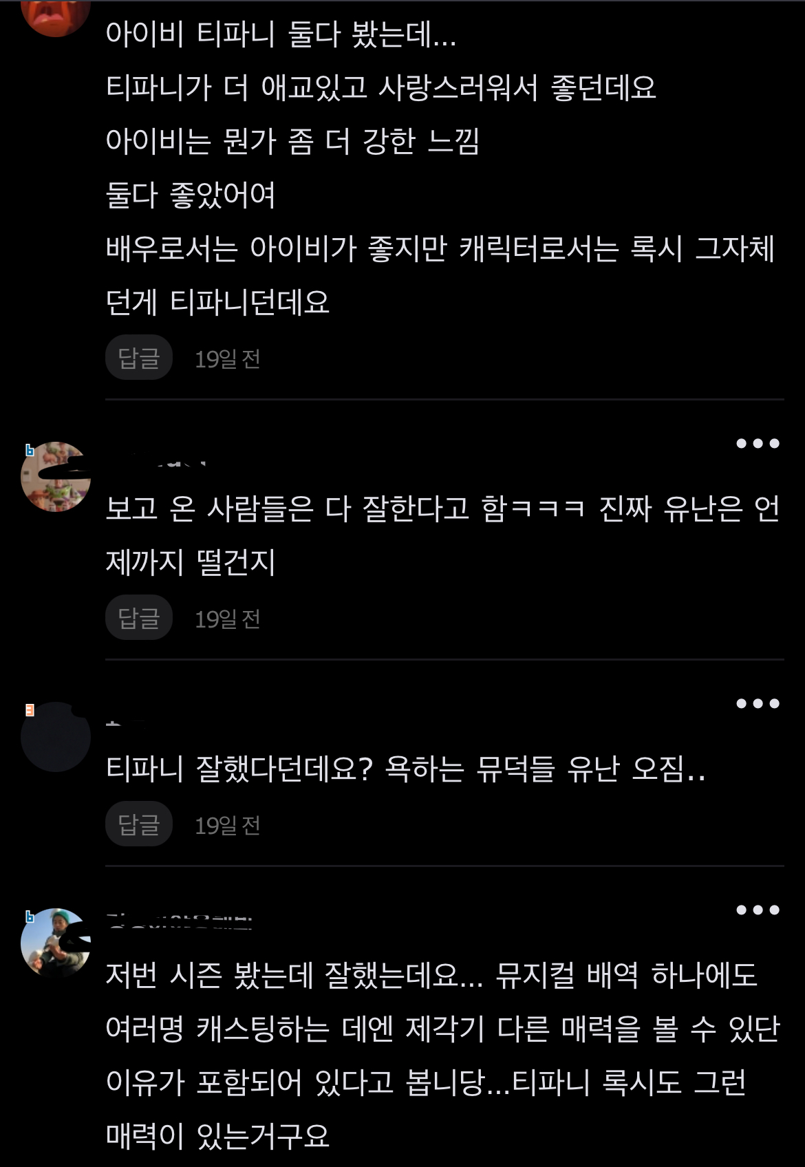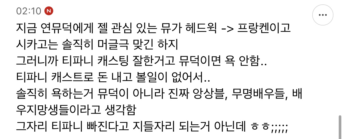 특정 뮤배팬도 티파니팬도 아닌 그저 뮤지컬 자주 보는 일반인으로서 이 답답한 현상에 홧병을 얻었으며