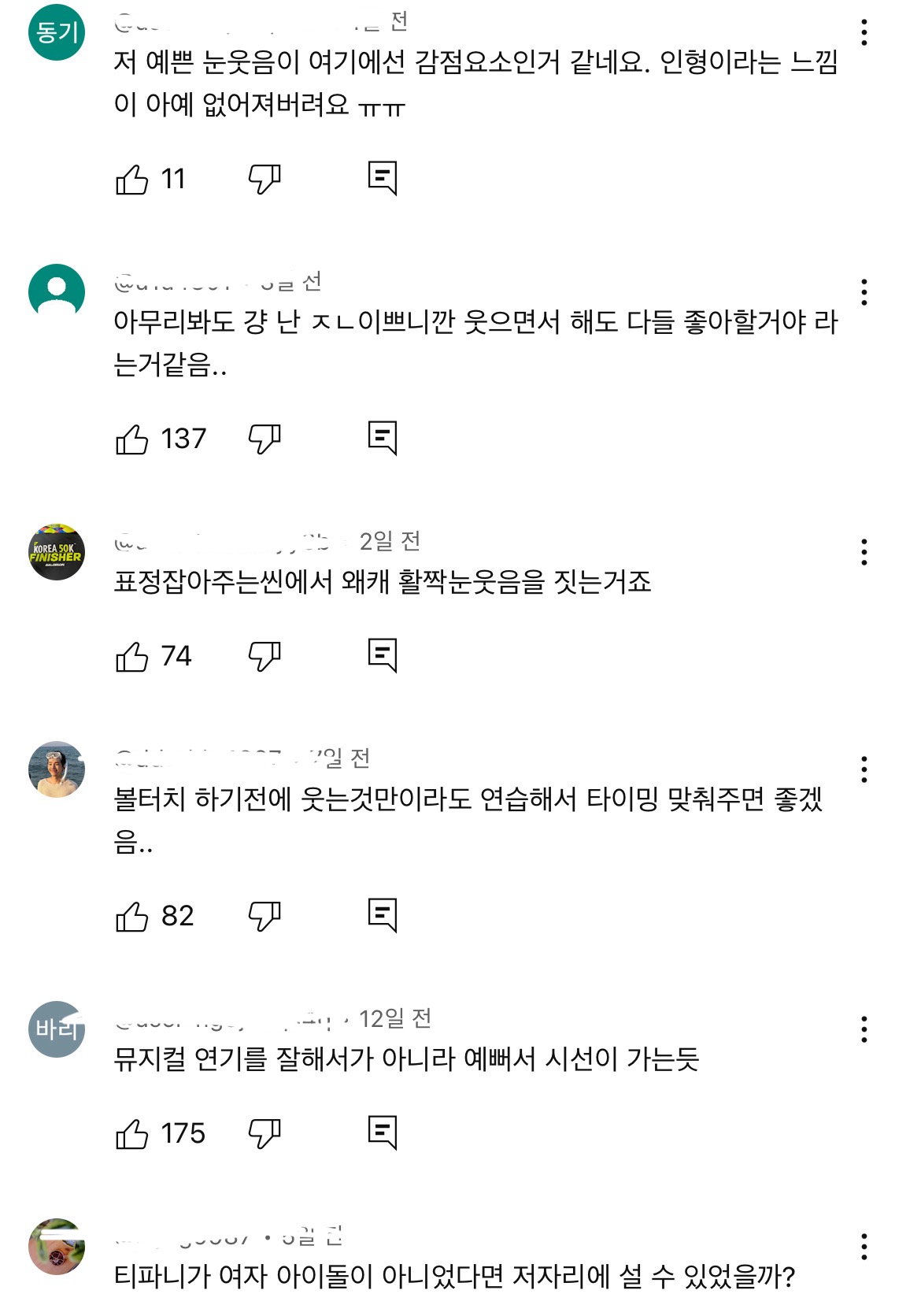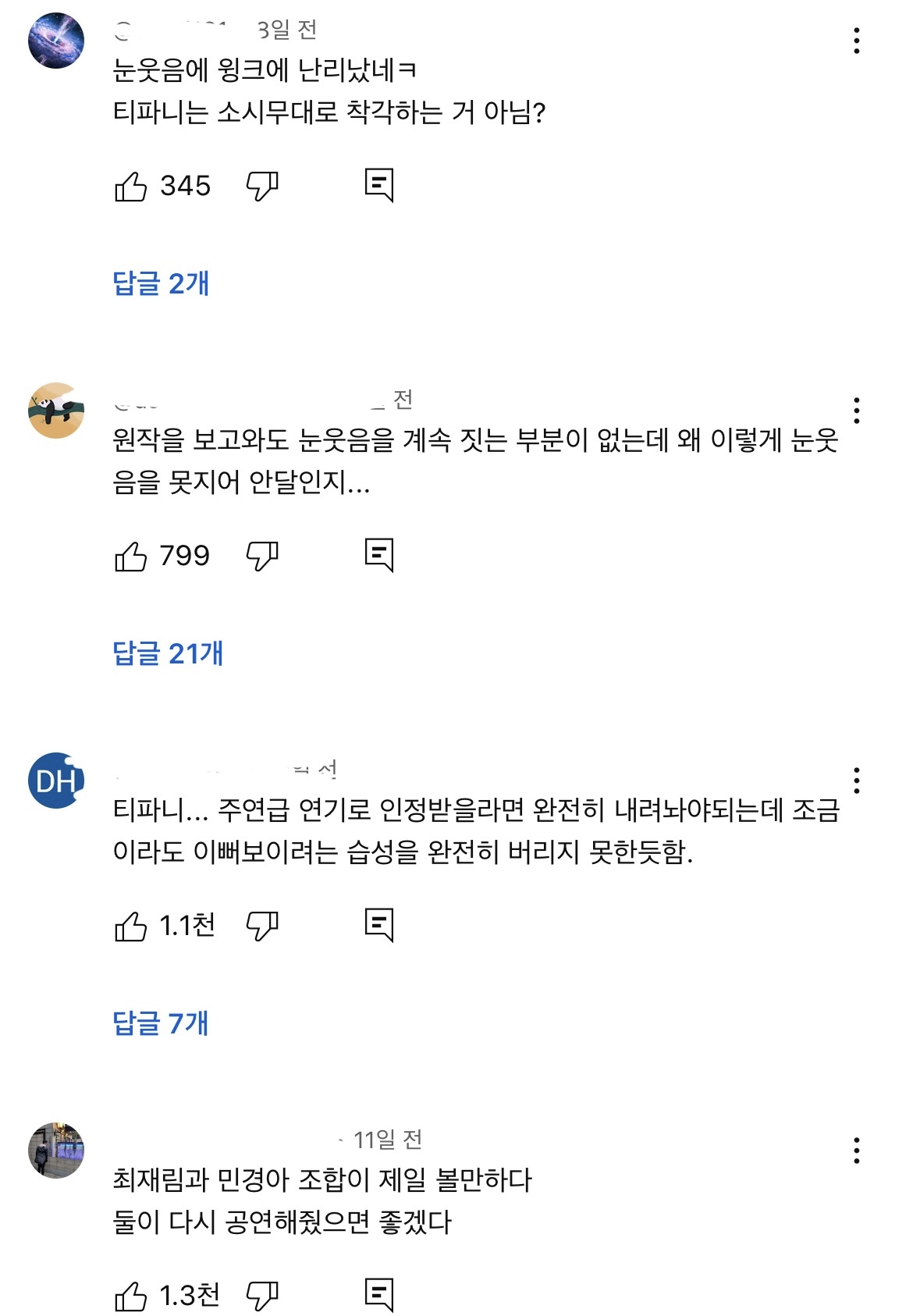 하지만 영상이 공개될 때마다 첫 뮤지컬 주연임을 감안하면 빠르게 발전하는 티파니의 모습을 보고