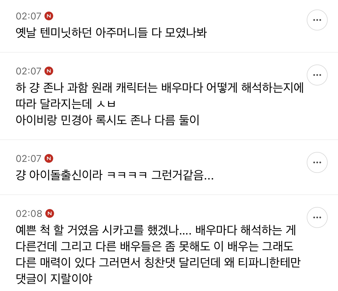 작성자김단비 작성시간 24.07.03 보기싫으면 안보면 되지 방구석 좆문가들 어이가없음 ㅋㅋ 실제로 보면 캐해 잘해서 백치미있고 미워할 수 없는 사랑스러운 연기 잘함