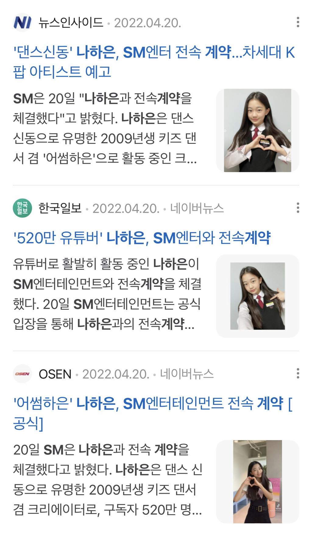 2022년 SM과 계약했다는 공식 기사가 뜨면서