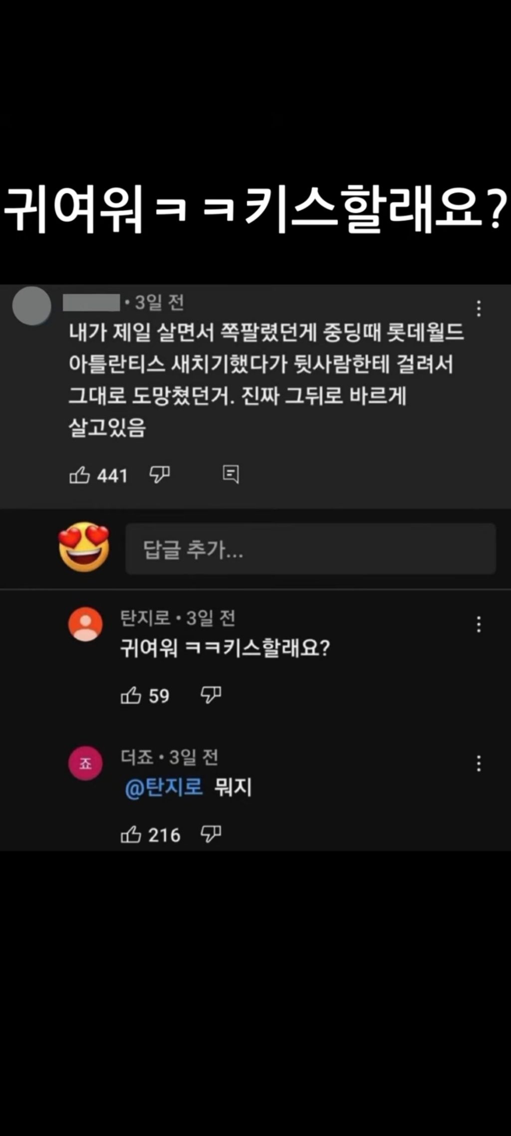 [스크랩] [흥미돋]"귀여워ㅋㅋ키스할래요?" 그 이후 작성자지구공룡설|작성시간24.07.06|조회수19,792 목록 댓글 28 글자크기 작게가 글자크기 크게가 출처: 여성시대 Tea타임https://youtu.be/c5MD1aGwTiI?si=Xl-5_OiDUxSjCbbn... 다음검색 스크랩 원문 : *여성시대* 차분한 20대들의 알흠다운 공간 현재 게시글 추가 기능 열기 북마크 공유하기 신고 센터로 신고 댓글 댓글 28 댓글쓰기 답글쓰기 댓글 리스트 작성자피루키 | 작성시간 24.07.06 ㅈㄴ얼척없어서웃김 작성자더블 테러블 | 작성시간 24.07.06 엥 ㅋㅋㅋㅋ 작성자인생이록록치않어 | 작성시간 24.07.06 챗지피티를 이러라고 만든 건 아닐텐데… 작성자이초 | 작성시간 24.07.07 분노를 표출할 수 있는거임? 인공지능도? 작성자개운하자 | 작성시간 24.07.29 ? 댓글 전체보기